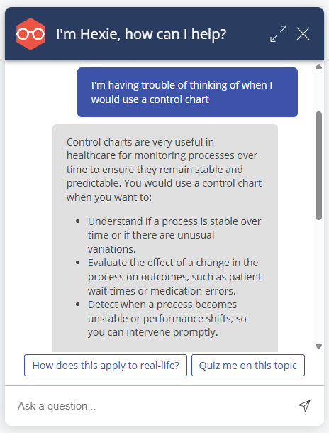 Make your learning experience more relevant by utilizing the personalization feature. This allows Hexie to tailor answers and examples to your specific field. To personalize Hexie, click on the "Personalize Hexie" chat suggestion and input the industry or functional area most applicable to you. The more specific you are, the more tailored Hexie's examples will be.
