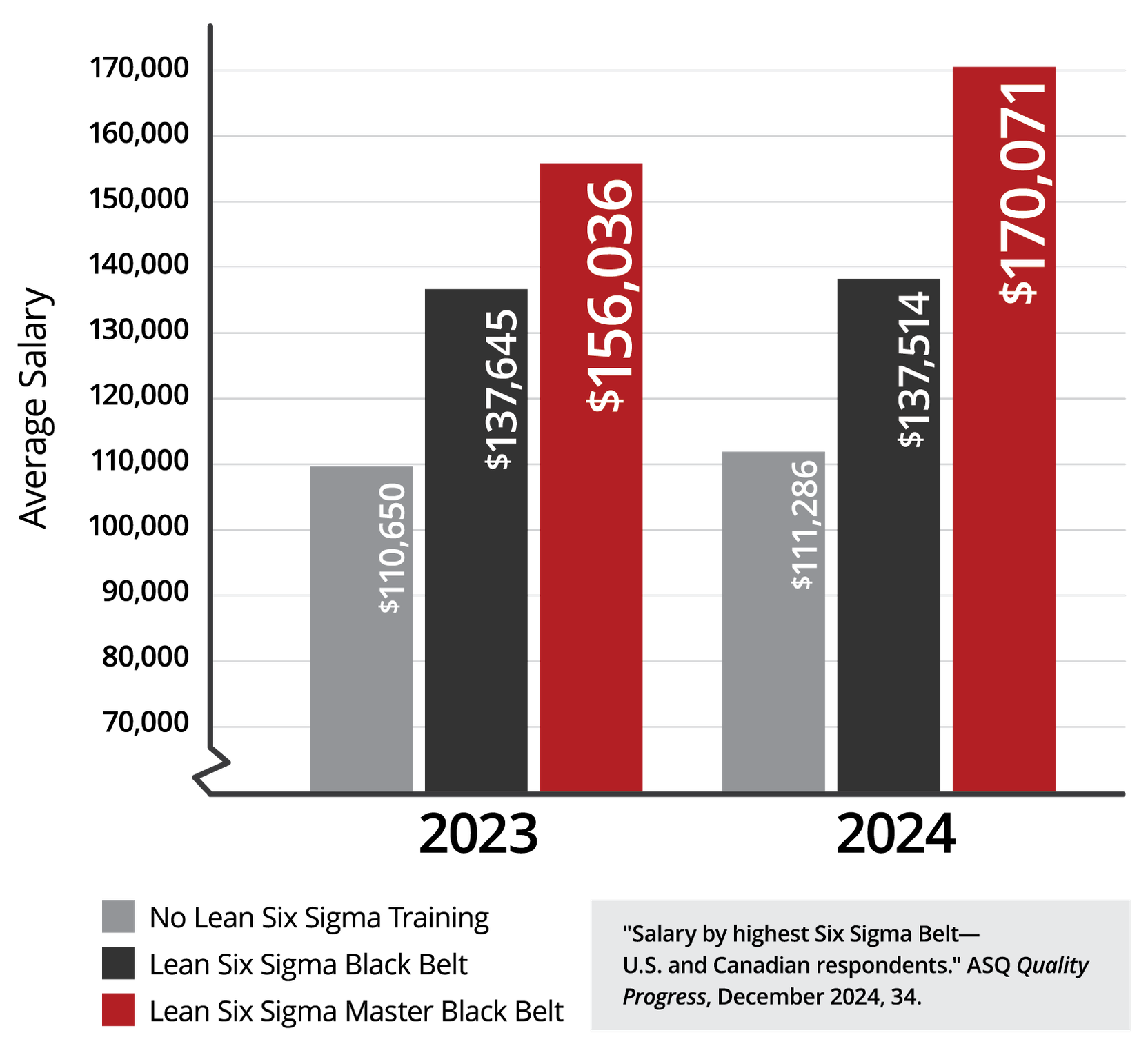 *As of 2024, reported in 'Salary by highest Six Sigma Belt—U.S. and Canadian respondents', Quality Progress, December 2024.