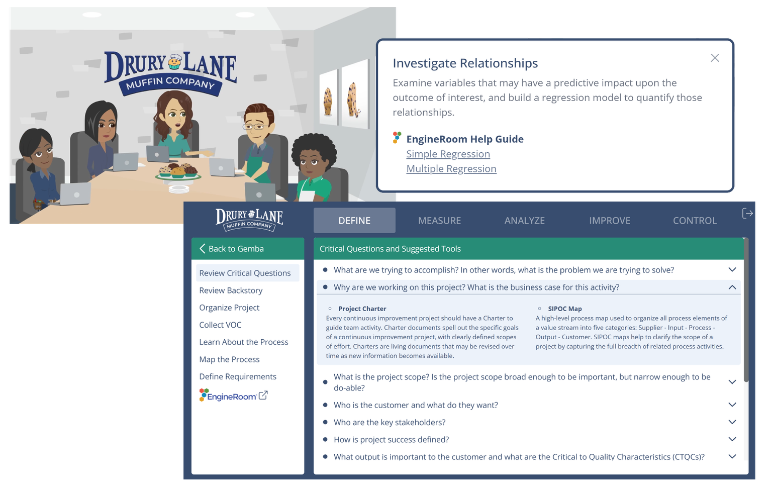 Drury Lane is seamlessly woven into MoreSteam's Lean Six Sigma eLearning, giving participants the opportunity to apply what they're learning in a realistic, project-based environment. By working through a structured DMAIC case study as they progress through training, learners strengthen both their understanding and confidence in using process improvement tools while getting more comfortable dealing with ambiguity.