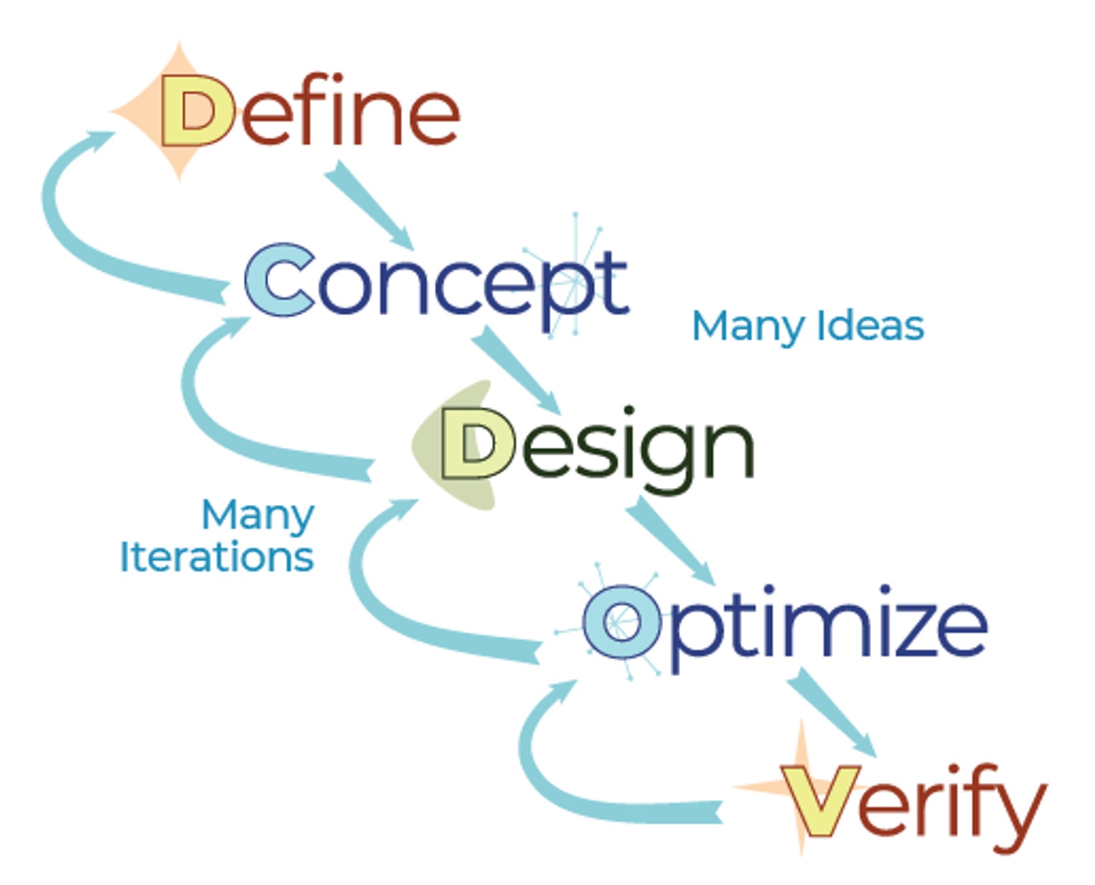 Hold Please! uses the DCDOV road map to engage participants at each stage of the design process. Students spend two days walking through each step from Define to Verify to theorize, test, and evaluate their results. The Hold Please! facilitator will work with students to scope the project using CTQCs, mitigate failure risks, optimize performance, and perform verification testing. Each team will brainstorm multiple concepts and pilot their solutions.