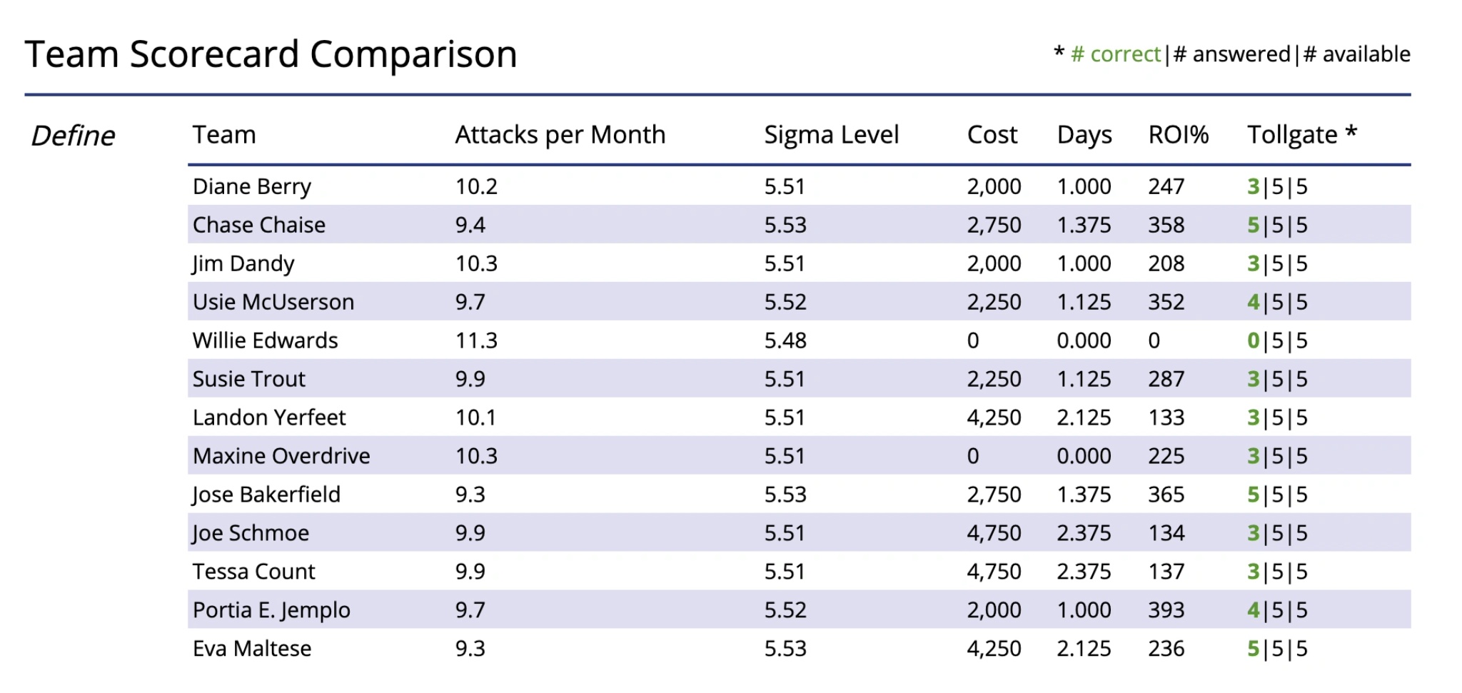 Using the steps of DMAIC as their blueprint, participants choose from various activities to determine the root cause and best course of action. Each decision made throughout the simulation triggers a different potential outcome. Participants must rely on their investigative and analytical skills rather than prior knowledge to solve the problem, making it a perfect exercise for Yellow and transactional Green Belts. Students walk away from this simulation with a better understanding of structured problem-solving in an open-ended environment.