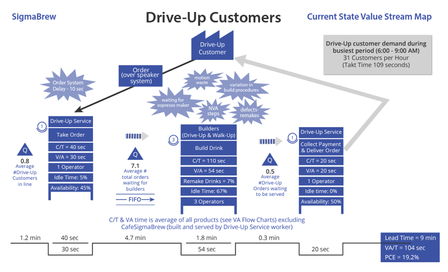 SigmaBrew® DMAIC is an instructional simulation for teaching Lean Six Sigma. Led by a facilitator, teams of 2-3 participants work together on a Green or Black Belt project for SigmaBrew, a specialty coffee retailer. As a realistic Lean Six Sigma DMAIC project environment that provides a series of critical questions requiring analytical thinking, rather than a prescriptive walk through of Lean Six Sigma tools. SigmaBrew is the best way to provide new Green and Black Belts with a rich project experience where they can practice process improvement tools and techniques in a safe, constructive environment.