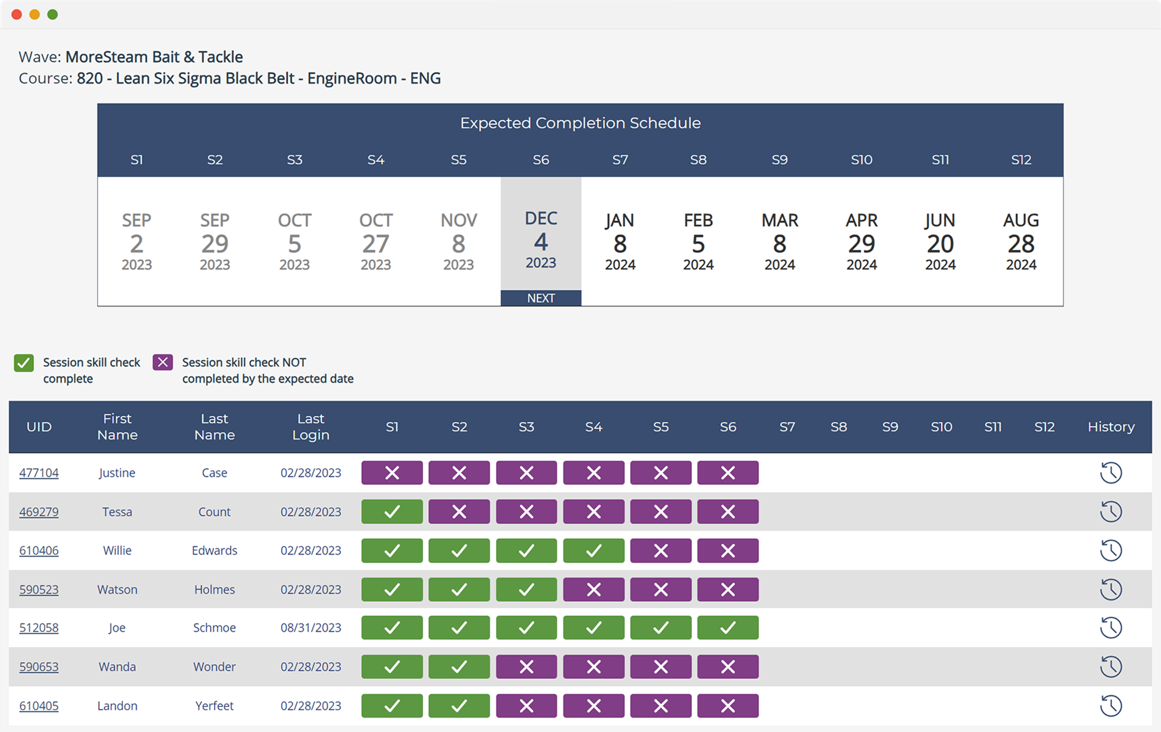 Quickly identify struggling students, spot knowledge gaps, and tailor your coaching approach based on real data. Whether you're guiding a handful of learners or managing a full deployment, the Six Sigma coaching dashboard empowers you to make smarter, more timely interventions that keep your learners—and your program—on track.