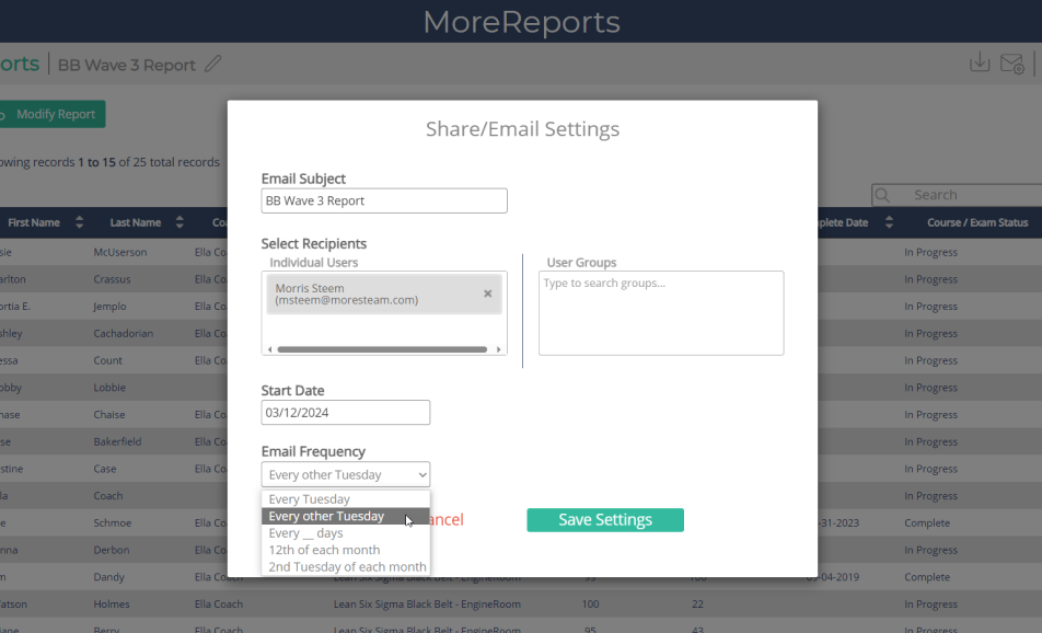 Set it and forget it reporting with MoreReports. Customize your report the way you want it, and schedule it to be sent to yourself, other admins on your team, and stakeholders on the cadence that matters to you.